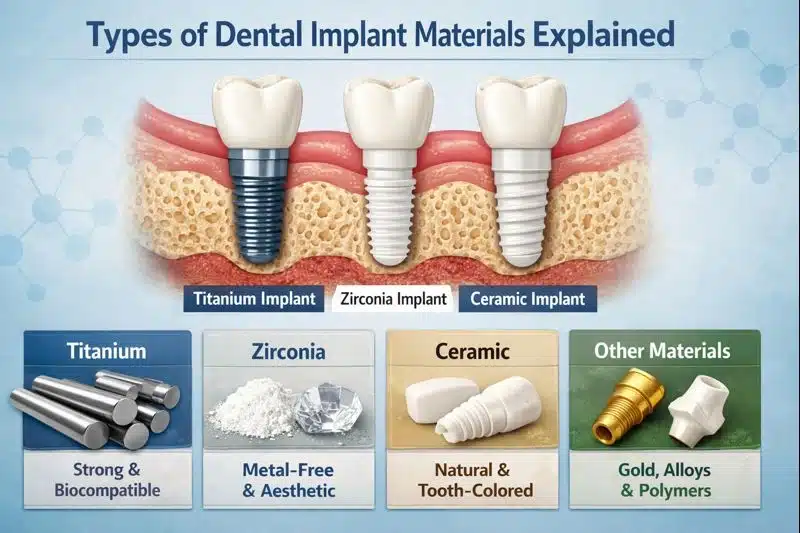 Material choices for both the implant body and the visible prosthetic crown influence cost and aesthetics. Titanium implants remain the long-standing standard due to proven strength, osseointegration performance, and broad product availability. Zirconia (a ceramic alternative) is gaining popularity for patients who prefer metal-free restorations or specific esthetic situations; zirconia implant bodies and matching all-ceramic abutments or crowns can command a price premium. Published restorative price ranges place zirconia crowns and custom ceramic abutments toward the higher end of the crown cost spectrum (often $1,500–$3,000), which contributes to a higher total system cost compared with standard titanium-based workflows.